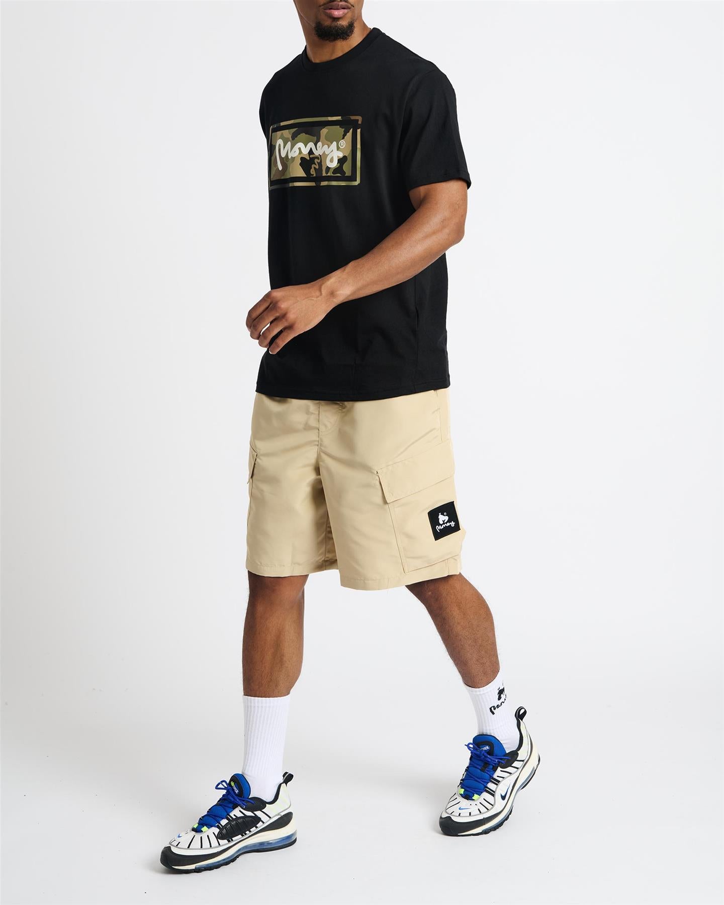 - The Cargo Engineered Shorts from Money deliver a sleek streetwear aesthetic with utility function. Designed with multiple cargo pockets and an elasticated waistband, they provide both practicality and comfort. Finished with signature Money branding at the leg.