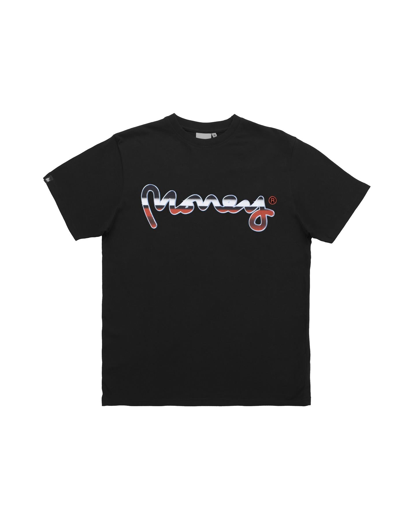 A sleek tee featuring a bold signature graphic with a modern chrome effect. Designed with a classic crew neck and a relaxed fit, it pairs effortlessly with any casual look.