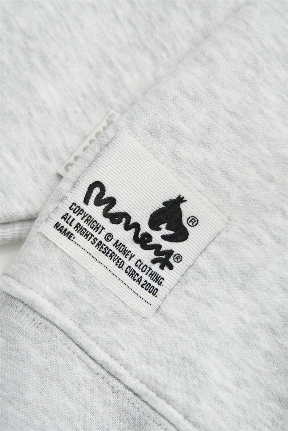 The Sig Ape Heavy Weight Hood Grey Melange delivers effortless street appeal. Featuring the bold Money logo across the front with ribbed trims and a soft brushed interior.